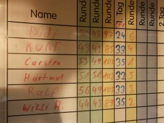Carsten und Willi A. pufferten mit jeweils 35 Stablefordpunkten. Ralf und Kurt erspielten sich jeweils 33 Punkte......